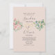 Um convite para casamento elegante, moderno, boho, cor-de-rosa floral, poeirento, rosa, com coração de corda dourada, flores de aquarela, verde e simples roteiro de caligrafia.