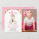 Convites de fotos de primeiro aniversario de bô rústico. Esta design apresenta flores femininas a aquarelas, fêmures e fundo de bolinhas rosa.