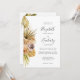 A borda esquerda deste elegante convite para o casamento do boho apresenta buquê floral de cor aquosa de folhagem tropical e flores em tons sutis e sutis de terra. O texto personalizável combina manuscrito, copperplate e fontes itálicas em cinzas de carvão em um fundo branco. O verso apresenta a coordenação de motivos de folhagem de aquarela em dois cantos; adicione suas iniciais e URL do site ou exclua o texto se desejar.