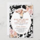Convites Boho Floral Vaca Negra Impressão Chá de fraldas