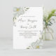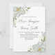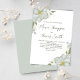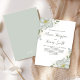 Este design apresenta uma elegante magnólia floral de flor branca, um buquê de jardim de flores brancas, uma simples tipografia escrita à mão, um roteiro de caligrafia na moda, para um verão de primavera romântico, belo casamento de jardinagem botânica, um minimalista sofisticado e simplista, com um texto de letra moderno para a caligrafia, convites para casamento verde de natas brancas