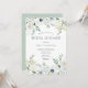 Lindas flores brancas e folhas de eucalipto decoram as bordas superior e inferior e a tipografia está em um estilo elegante e simplista no qual você pode facilmente personalizar. Você pode alterar a cor de fundo verde Sage no verso, bem como o texto para uma cor diferente, se desejar, por meio da opção Clique para personalizar mais.