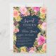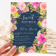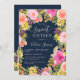 Um jardim bonito de flores silvestres de Boho Adorável convite para 16 anos com ilustração floral pintada manualmente em flores e rosas cor-de-rosa, amarelas, prados selvagens de pessegueiro, eucalipto verde-sábio e verde-verde em azul-marinho escuro editável. Perfeito para o verão, festa de aniversário de jardim ao ar livre.