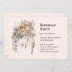 Convite de aniversário com um bonito buquê de flores em cores neutras de castanho, pêssego e laranja. Um apanhador de sonhos com penas adiciona um elegante talento místico.