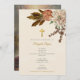 Um belo design batismo com aquarela flores boho, Cruz de ouro e um ícone cristão do Batismo de Jesus Cristo no verso da carta. Um design religioso ideal para o Natal Batismo de uma menina ou de um menino. Os artigos de papelaria e decoração correspondentes podem ser vistos nesta coleção de designs.