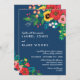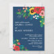 Convite de casamento Floral com buquês de flores desenhadas à mão em lindíssimas combinações de cores folclóricas — verde, amarelo, rosa, vermelho, azul profundo e lacre — combinado com fontes brancas modernas. Convite floral perfeito para um casamento de primavera ou de verão.