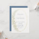 Um modelo de convite de casamento com um tema de borboleta com um quadro de vassoura e borboletas pintadas à mão, de cor d'água, em um tom azul empoeirado, um borboleta de ouro (isto é um efeito digital, não uma folha real). Romântica e elegante, na moda e chic, vai apelar à noiva e ao noivo modernos que querem uma atmosfera refinada mas relaxada, talvez no campo, num jardim ou outro lugar onde a natureza tem um papel importante.