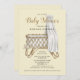 Um elegante convite de chá de fraldas ao estilo bambu moderno do bambu, baby bassinet, neutro em termos de gênero. Simples elegância. Pontas beges de sépia neutra em branco. Esquema de cor do Serene muted.