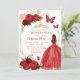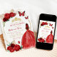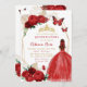 Convites Boho Geométrico Dourada e Rosas vermelhas Quinceañ