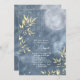 Convites Boho Glam Blue, Prata, Lua cheia Dourada Aniversár