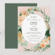 Um belo convite clássico de casamento convida seus convidados em estilo elegante. Este belo convite inclui tons pastéis macios e florais aquosos modernos verdes em tons de pêssego, branco, marfim creme, sábio e verde mais brilhante. Este convite de casamento personalizado coordena-se com nossa coleção floral de cheio botânico de artigos de papelaria, decoração e papel de evento.
