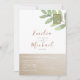 Simples, moderno, mínimo, botânico, convite para casamento bô com verde-aquarela e monograma - iniciais no canto direito. Trendy, a natureza inspirou, elegante.