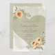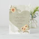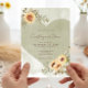 Abraçar o charme livre de boho elegância com o nosso convite de casamento encantador. Apresentando um fundo verde de lavagem com aquarela verde de calcanhar calcário calcário, a peça central é um coração verde mais escuro, enfeitado com aglomerados de girassóis amarelos macios, castanhos e verdes. O cabeçalho da fonte do script moderno e o texto transparente e casual do corpo oferecem um toque contemporâneo, estilo perfeitamente equilibrado e fácil. Esta design capta lindamente a essência da sua história de amor, convidando seus convidados a comemorar num cenário de beleza natural e sofisticação relaxada. Placas gráficas de girassol criadas pela Verya Studios. Criado pela imprensa simplesmente de farmácia.