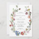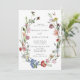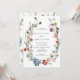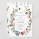 Um bonito convite para o casamento do boho, que inclui uma coroa floral assimétrica de sapato de cavalo com multicor aquosa holandesa flores vitalícias em fundo branco. O reverso apresenta um padrão de flores solto.