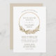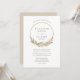 Este boho design apresenta os nomes da noiva e do noivo enquadrados por um aro de ouro decorado com grama de pampas de aquarela. Personalize o texto marrom-claro com os nomes dos casais e os detalhes do casamento. O lado inverso é um tom sólido de bege.