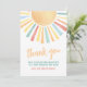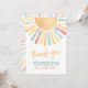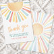 Esta versão de etiqueta de agradecimento "Thank You" para download digital é uma forma alegre e vibrante de expressar gratidão, apresentando um sol brilhante no topo com "Thank You" em escrita fluida abaixo. Uma curta nota de agradecimento, junto com o nome da família, completa o design, tornando-o pessoal e sincero. A parte de trás da etiqueta também exibe o sol, adicionando um toque extra de calor e cor. Esta etiqueta funciona perfeitamente para uma festa de 1º aniversário "First Trip Around the Sun" ou até mesmo para um chá de bebê "Here Comes the Son". Seu tema divertido e colorido com tons de amarelo, laranja e azul-turquesa o torna ideal para qualquer celebração cheia de sol.