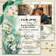 Um convite de casamento artístico e certeiro que apresenta uma pintura de flores brancas em mármore. No verso está sua foto favorita e um modelo de código QR opcional com informações sobre respostas.