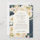O convite para o casamento do tom azul-terra marinho apresenta folhagem floral aquarela em flores brancas com buquê amarelo quente, folhas botânicas e flores.A paleta de tom de terra natural o torna excelente para os casamentos de primavera de verão, casamentos com vassouras, casamentos outono e casamentos rústicos.
