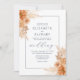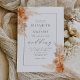 Os cantos deste romântico convite para o casamento de vassoura apresentam buquês florais secos por aquarela em tons de terra macia de laranja queimada, terracota, bege e marfim. O texto personalizável combina fontes de serif, itálico e script azuis do marinho com um retângulo azul do marinho em um fundo branco. O verso é um azul marinho sólido coordenador.