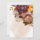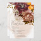 Este design apresenta um grande buquê de canto de marsala, ouro amarelo, argila e flores brancas sobre fundo de salpicos de cor castanho bronzeada. Os tons de joia são perfeitos para o outono ou casamentos de verão tardios. Criado pela imprensa simplesmente de farmácia.