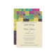 Estes convites para o casamento apresentam um gráfico de cabeçalho que tem o aspecto de uma manta de retalhos floral com um estilo ousado e maximalista. Os detalhes do seu casamento estão em marinho azul cursivo e impressão com um fundo colorido de creme.