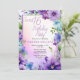Elegant purple and blue floral design "Sweet 16 Birthday Party" design featuring a floral frame of morning glories and aster flowers, on a pastel-toned watercolor background.