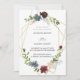 Capture o charme rústico de um outono no campo com folhagens em aquarela e tons simples de outono. Adicione um toque boêmio com flores de margarida, desenhos geométricos modernos e uma paleta de azul-marinho, azul empoeirado e azul claro para um casamento memorável com tema azul.