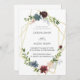Capture o charme rústico de um outono no campo com folhagens em aquarela e tons simples de outono. Adicione um toque boêmio com flores de margarida, desenhos geométricos modernos e uma paleta de azul-marinho, azul empoeirado e azul claro para um casamento memorável com tema azul.