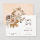 Elegante Boho Neutral Acentos Florais Nupa O Cartão de Data Salvar a Data de um Caso Sonhador Anuncie seu dia especial com esses cartões salve a data elegantes e românticos. Apresentando uma paleta de cor suave e neutra e delicados sotaques florais de Boho, essas cartas exudem um charme caprichoso e convidativo. A design limpa e minimalista é complementada por um pano de fundo de aquarela suave no verso, criando um sonho e um sentimento etéreo. Personalize seus cartões salve a data com as iniciais do casal para obter um toque exclusivo e sincero.