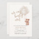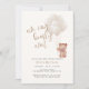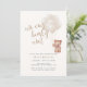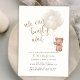 Boho Minimalista Podemos Esperar Bebê Invisições, design com ursinho de cor d'água com gravata de arco e balão de cor neutra em creme, bege, ouro, bronzeado, esquemas de cor. Celebre o chá de fraldas com este design perfeito para o bebê e para a menina. Este design também é perfeito para o bebê esperado no verão, outono, primavera e estação de inverno.