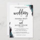 Convite de casamento romântico para fotos de bolo com design decorativa de penas e um cartão preto e branco.