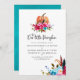 Convites de aniversário florais de abóbora, cor-de-rosa-chic e azul-d'água, projetados para serem rápida e facilmente personalizáveis de acordo com as especificações de seu evento.