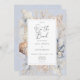 Ponha o tom para a sua celebração sonhadora à beira-mar com o nosso convite de casamento sobre a praia. Apresentando um fundo azul suave e poeirento, este design boho-elegante é enquadrado por delicados elementos aquosos do oceano — conchas, corais e sotaques costeiros em tons suaves de azul, bronzeado e creme. A caixa de texto branca no centro destaca seus detalhes de casamento em uma fonte moderna e elegante, criando o equilíbrio perfeito entre sofisticação e encanto costeiro. Sua foto favorita adornou as costas. Convide seus entes queridos para compartilhar seu dia especial com um convite tão eterno e bonito quanto o próprio oceano! Criado pela imprensa simplesmente de farmácia.