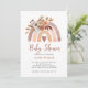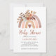 Esses bonitos convites para bebês de aquarela apresentam flores do estilo "boho" de tendências e arco-íris com um pequeno coração, e um roteiro manuscrito. Laranjas de Pastel, castanhos e matizes neutros de terracota em um fundo branco