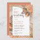 A aquarela química seca por cor aquosa terracotta hydrangeas e palma deixa design de aniversário da mulher "80" floral. Design composto por Holiday Hearts Design (direitos reservados).