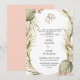 Folhas de palma de cor d'água formam uma estrutura agradável para suas núpcias semissformais. Apresentando uma sutil folhagem verde de sábio, o quadro convida os convidados do casamento com uma bela tipografia e um encantador motif verde-folha de Boho. As cores são sutis folha de palma verde e rosa cor-de-rosa. Este convite tem um design de monograma único no topo da frente e no meio.