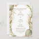 Folhas de palma de cor d'água formam uma estrutura agradável para suas núpcias semissformais. Apresentando uma sutil folhagem verde de sábio, o quadro convida os convidados do casamento com uma bela tipografia e um encantador motif verde-folha de Boho. As cores são sutis folha de palma verde e rosa cor-de-rosa. O texto desta versão é impresso em verde-oliva.