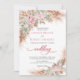 Convites Boho pampas e rosas rosa pinceladas eucalipto