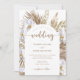 Pampas Grass Arch foto Casamento Convite com caligrafia e botânicos do deserto boêmio com pampas brancas, bronzeadas, beges, neutrais. Adicione a foto do casal feliz à parte traseira do convite de casamento.