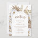 Convocação para Casamento de Pampas Grass Arch com caligrafia roteirista e botânicos para pampas do deserto boêmio branco, bronzeado, bege, neutrais.
