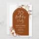 convite de aniversário em terracotta queimou laranja e branco. Belo design minimalista moderno com sotaques botânicos pintados à mão. Apresenta capim de pampas, folhas, rosas e fontes de script de tipografia. Tendy Bohemian estilada tema do deserto perfeito para outono, inverno, primavera ou verão. Você pode escolher convites impressos e/ou fazer o download instantâneo do modelo digital. Perfeito para uma comemoração de 70 na moda feminina.