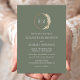 Esta design de boho apresenta as iniciais da noiva e do monograma do noivo moldadas por uma corda d'água, pampas de grama. Personalize o texto branco com os nomes dos casais e os detalhes do casamento em um fundo verde sábio. O verso é verde de sábio sólido.