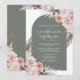 Este convite de casamento moderno do Boho Chic está a ser apresentado numa paleta de cor suave de verde sábio, rosa e tons de champanhe e bege. Apresenta belos rosas detalhados e florais com grama-palma, palmas e verde-palma. Esta bela paleta de cores é perfeita para primavera, verão ou casamento outono.
