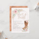 Convite de chuveiro de noiva em estilo boho com caligrafia moderna em falso rose gold, botas e bolhas, apresentando arranjos de cactus floridos em rosa, grama pampas e um arco de linha. Este convite de chuveiro de noiva é ideal para quem procura um design de convite boêmio.