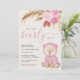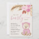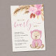 O convite para o chá de uma menina de Boho, que apresenta uma ilustração aquática de um ursinho fofo, um buquê de grama taupe e terracotta pampas e flores cor-de-rosa e "Nós podemos esperar muito" numa mistura de simples tipografia e um roteiro de inchaço cor-de-na moda.