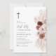 rosa bohemian posty e design floral rosa primeiro cartão de convite da comunidade sagrada. O texto e as cores podem ser editados.