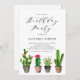 Convide convidados para o seu evento com este convite de aniversário personalizável. Ele apresenta cacto e suculentos com coloração aquosa. Personalize este convite de inicialização adicionando seus detalhes. Este convite de aniversário de cacto é perfeito para eventos de verão.
