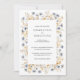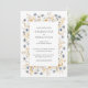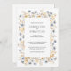 Flores azuis pálidas e lilás, com folhas verdes sábias e sotaques amarelos e laranja, trazem uma sensação romântica e natural à paleta. Os tons sem som mantêm o aspecto simples e mínimo perfeito para eventos de vassoura, madeira e primavera ou jardim de verão. Um quadro de flores de boho circunda o seu nome e detalhes do evento, mostrados em uma fonte elegante. É um convite para uma celebração onde a beleza das flores selvagens encontra a graça da simplicidade, criando uma vibração que é única sua. Prepare-se para fazer uma declaração e dar o tom para um casamento que é tão inesquecível como a sua história de amor