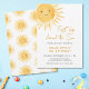 Está planejando a primeira festa de aniversário de uma garota? Este belo convite é decorado com uma aquarela amarela sorrindo o sol e diz "Primeira Viagem ao redor do Sol" na tipografia de na moda. Há um padrão de sol nas costas. Facilmente personalizável. Original Watercolor © Michele Davies.