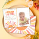 Boho Primeira Viagem Em Torno Do Convite Fotográfico Do primeiro aniversario Sun. Personalize este design muito facilmente com seus próprios detalhes. Verifique a coleção de cheios para decoração de parte correspondente.